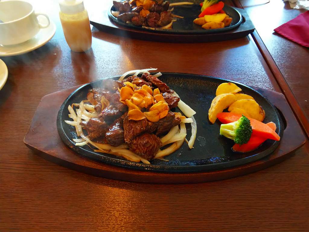 ランチメニューのお手頃なサイコロステーキ200gを頼んで、ニンニクをたっぷりかけた上に、さらにニンニクソースをかけたせいか?お口の中がニンニク臭たっぷりになってしまいました。