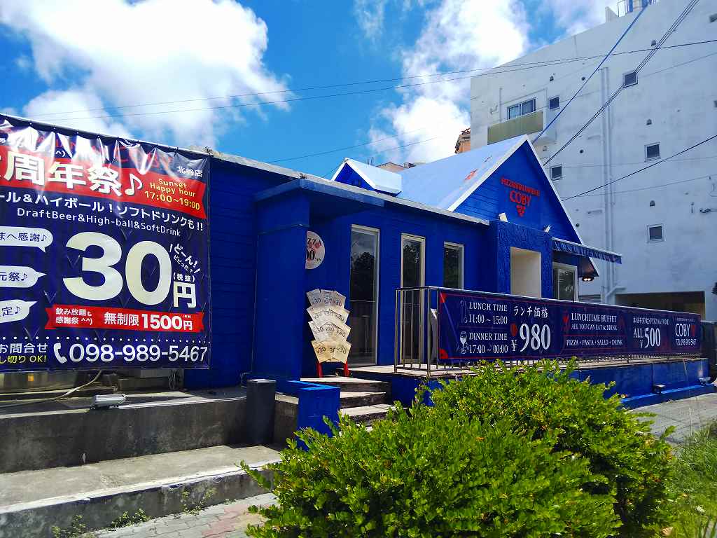 最近お気に入りの北谷の「宮城海岸」近くで、先日「タイクーン」に行った時に車を止めた駐車場の前にある「コビー」と言うピザ屋さんへランチに行って来ました。