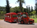 東南植物楽園に行きました。行く時にカーナビの言う通りに進んだら正門じゃなく裏側のマニアックな道を通って行く事になったんですが、結構面白かった!米軍の門の脇道を通って狭い道を進むと徐々に露店らしき店が並んでいて、どんどん進むにつれ道は狭いのに店と人はたくさん出てきて、おまけに車もすれ違う状態が続いている非常に狭い場所でした。店はたくさん並んでるんですが、売ってる商品が、売り物なのか拾って来た物か判別しづらいくらいの物ばかりで、この道って一体なんなの?写真を写すどころじゃなかったので、写真は有りません。東南植物楽園は入ってすぐの所に300円で園内を一周してくれるバスが止まってたので、それに乗って、あっと言う間に見終わっちゃいました。その位が丁度良いかも! |