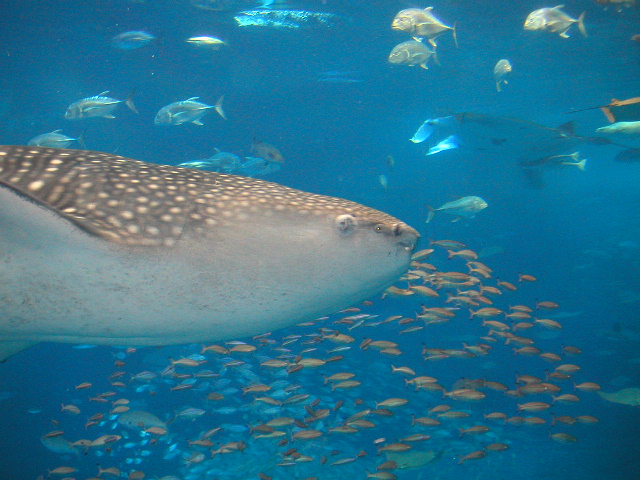 やっと、美ら海水族館に行って来ました。ジンベエザメがでかくてビックリ!まったく写真に入りきれませんでした。さすが世界一の水槽だけあって、圧倒されました。多分、笑ってはいないと思うんだけど、笑っているみたいなので写して来ました(写真左から2番目)。水族館の横に有る、イルカショーで「おきちゃんショー」って書いてました。めちゃくちゃ暑かったけど、ショーは大満足でした。このイルカ達のジャンプを見て、鴨川シーワールドのシャチを思い出してしまいました。今度は空いてる時に行こう〜っと!
