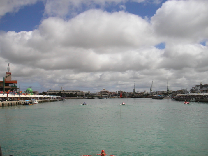 6月27日(日)糸満漁港で開催された糸満ハーリーを見学に行って来ました。ハーリーって、あっちこっちでやってるんですよね!まあ、ボートレースみたいな物なんですけど!3隻づつレースをやるみたいなんですが、あまりルールが解らないままぐるっと一周して帰って来ました。ほとんど、お祭りですね!屋台もたくさん出ていて楽しかった〜!扇風機みたいな機械で風を送ってビニールの建物をふくらまし、中に子供達が入って飛び跳ねて遊ぶアトラクションが有ったんですが、すごく入って見たかった〜!来年は、那覇ハーリーを観に行かないと! |