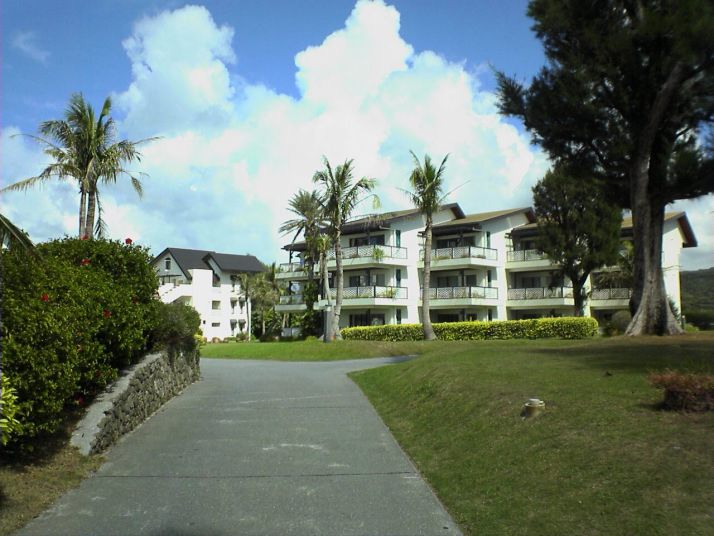 オクマホテルは、沖縄のリゾートホテルに有りがちな、ビルタイプのホテルと違って、コテージが広い敷地内に、点々と建てられていました。