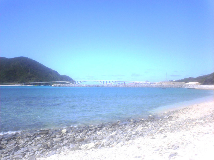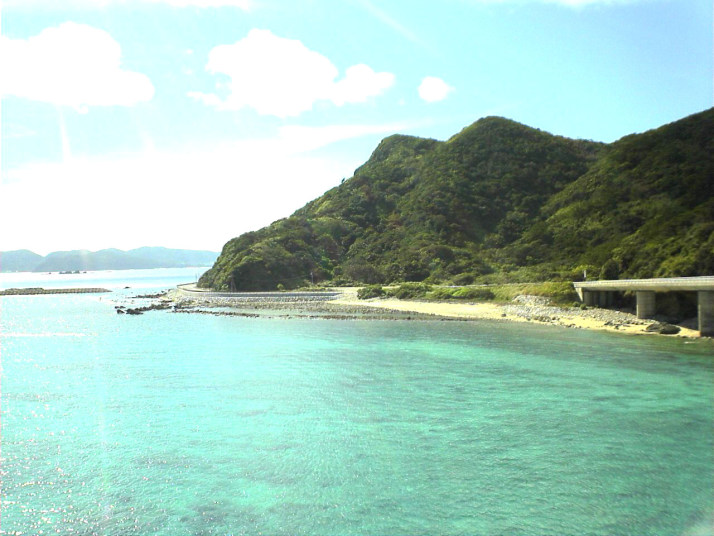 ここは、阿嘉島のフェリー乗り場から、隣りの空港が有る島とを結ぶ、橋の上から見た風景です。