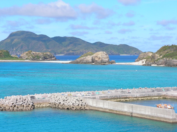 こんな漁港の横なのに、さすが離島だなと、感心する程の海でした。