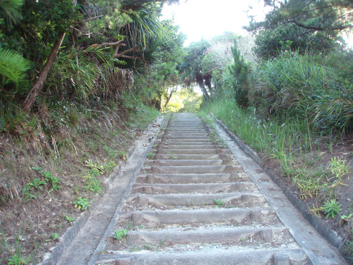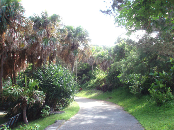 展望台へは島の地図を見ると、いくつか細い小道をぬけると行けるように書いては有るんですが、いざ行って見ると獣道になっていてとても行く気にならなかったので、一番遠そうなキャンプ場をぬけてプールサイドから行く道を選びました。