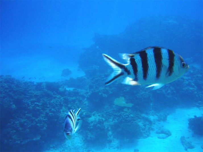 さっそく海に飛び込み、沖の方の深く落ち込んでいるドロップゾーン辺りから、島の周りを泳いで行きました。