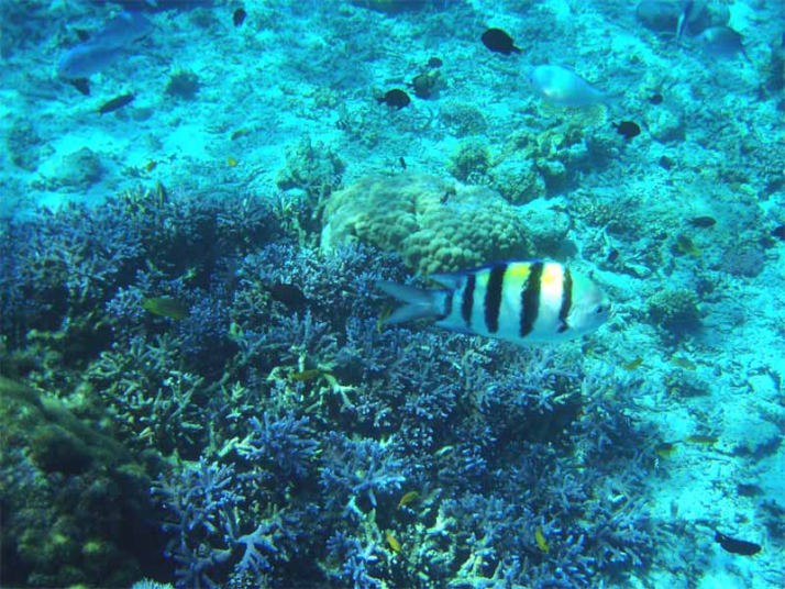 沖へ行けば行くほど凄い数の珊瑚が連なっていて、何処まで続いているのだろうと不安になるほどでした。