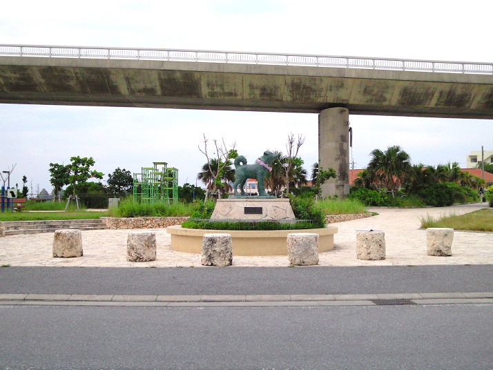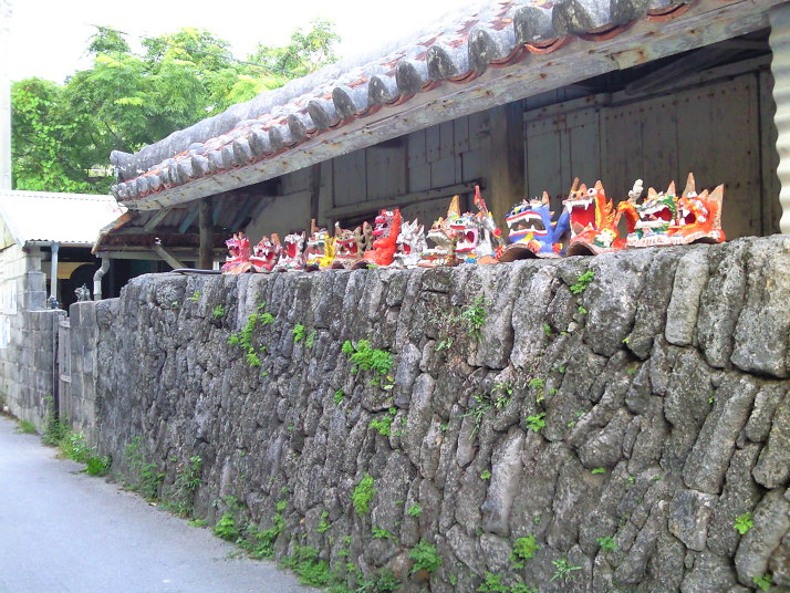 これは、島で一番大きな売店「105ストアー」の前に飾ってあったシーサー達です。