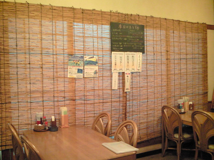 シャワーと着替えを済ませて、夕方6時に、昨日と同じ「まるみや食堂」へ行って見ると、昨日と同じ奥の席に、昨日も会った外人さん家族が一番乗りで座っていました。
