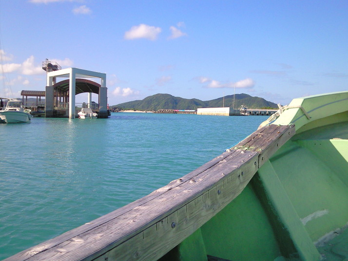 何とか昼食も確保し港へ行って、いつも無人島渡しを頼んでいる宮里のオジーの船に乗り込む事となりました。