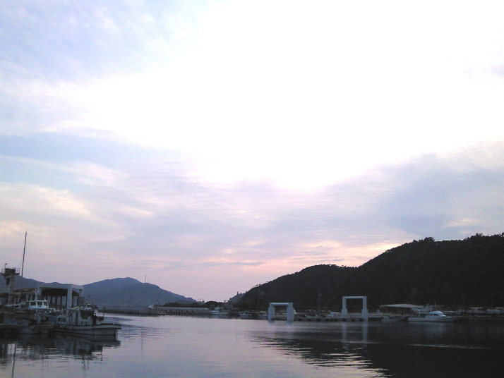 食堂が開店する午後6時まで少し時間があったので、港の階段になっている所で、ぼーっと海を眺めていました。