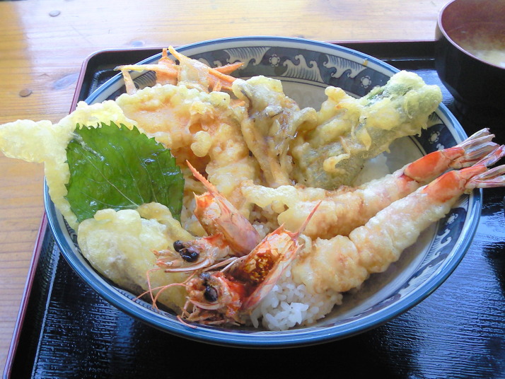 できて来てビックリ!車えび丼って、でかでかと書いてあったのに、車えびが凄く小さくて、ほとんど天丼でした。