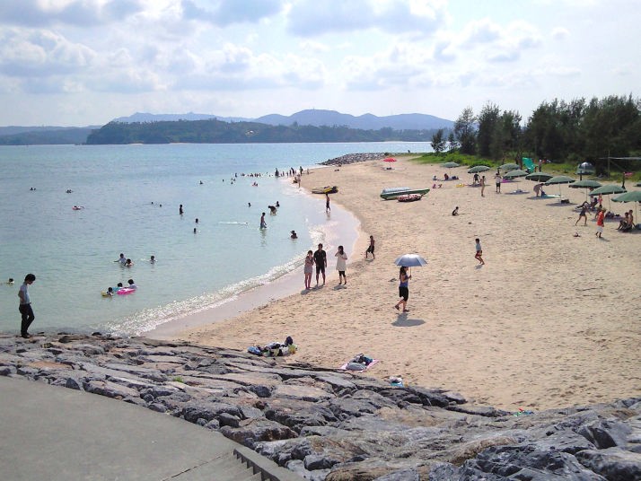イルカショーから歩いて、人工のエメラルドビーチに行って見ました。