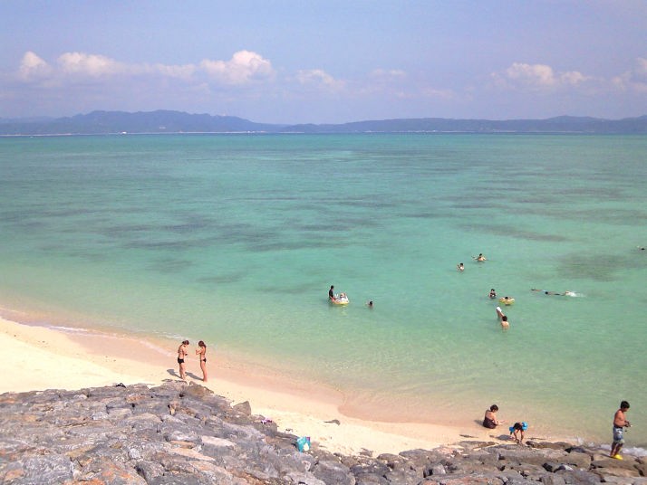 私達が到着した頃には数組の家族が泳いでいたんですが、浜辺から10mくらいの場所で、腰の深さくらいで立っているのが見えたので、一か八か泳いでみる事にしました。