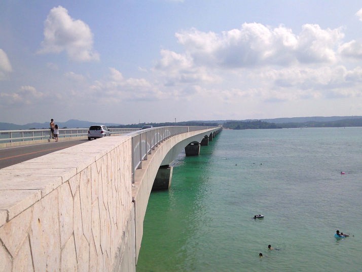 着替え終わって車に乗り込んだんですが、今日の宿が有る名護市はすぐに着いてしまうので、ちょっと足を伸ばして、古宇利島まで行ってみました。