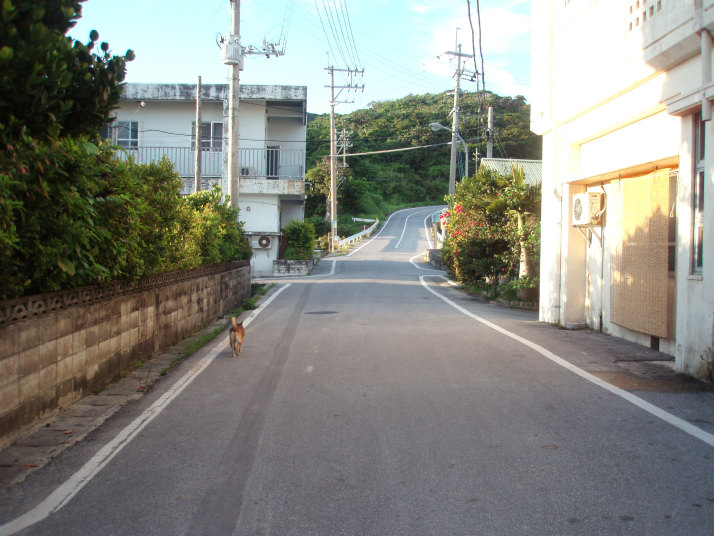 新垣商店前で、ワンちゃんは違う方向に散歩へと向かいお別れしました。