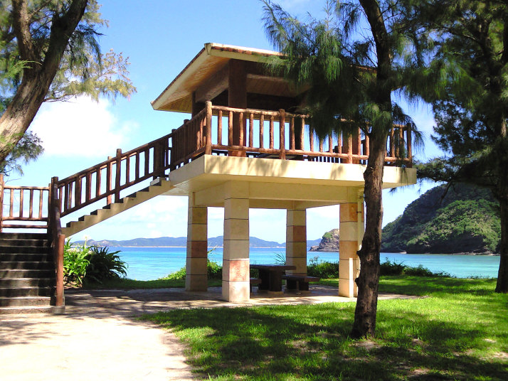 あまりの暑さにテントには入らず、ビーチのすぐ後ろに有る展望台の日陰の席で休んでいました。