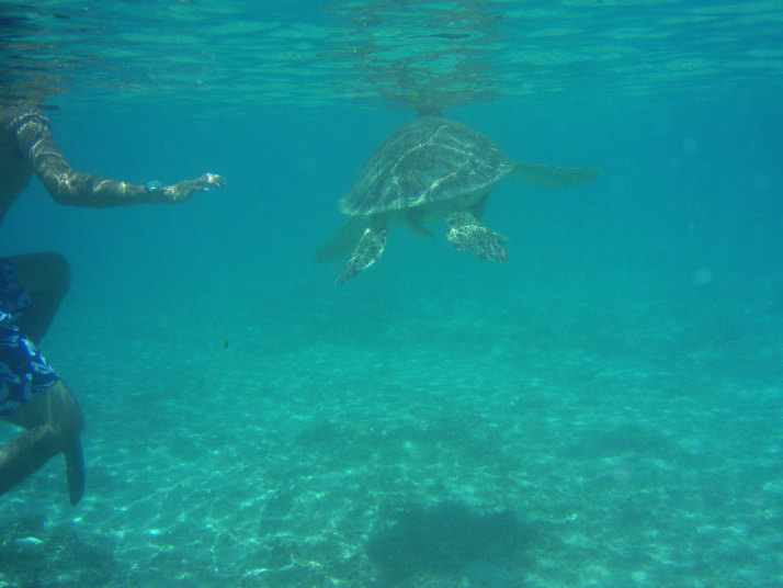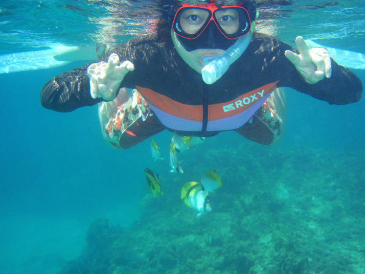 海亀から離れて沖の方へさっきよりも進んで行き、シュノーケリングやダイビング用のボートが停泊している辺りまで泳いで見ました。
