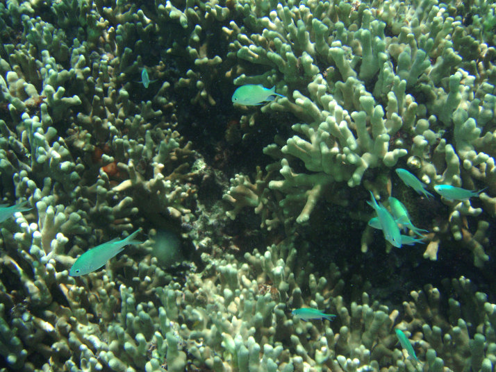 めちゃくちゃキレイな珊瑚や魚たちが見えました。