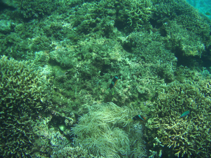 でも何とか珊瑚が、うっすらと見えていたので、2本程泳いでテントで休んでいました。