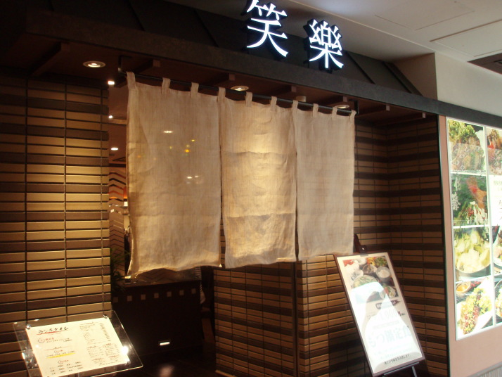 一通り廻ってみた後、ここはやっぱり博多名物のモツ煮込みの店「笑楽」に入って見る事にしました。