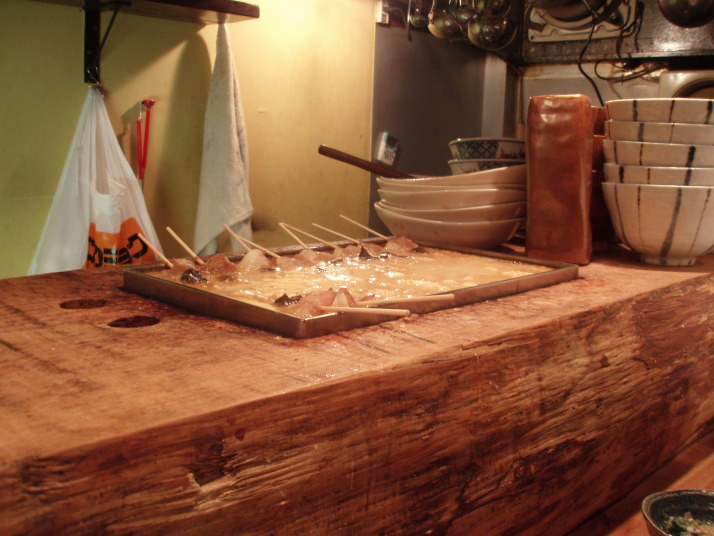 何度か店の前をうろついて、一番美味しそうだけどサラリーマンが数人すでに出来上がっている状態の店に、思い切って入って見ました。