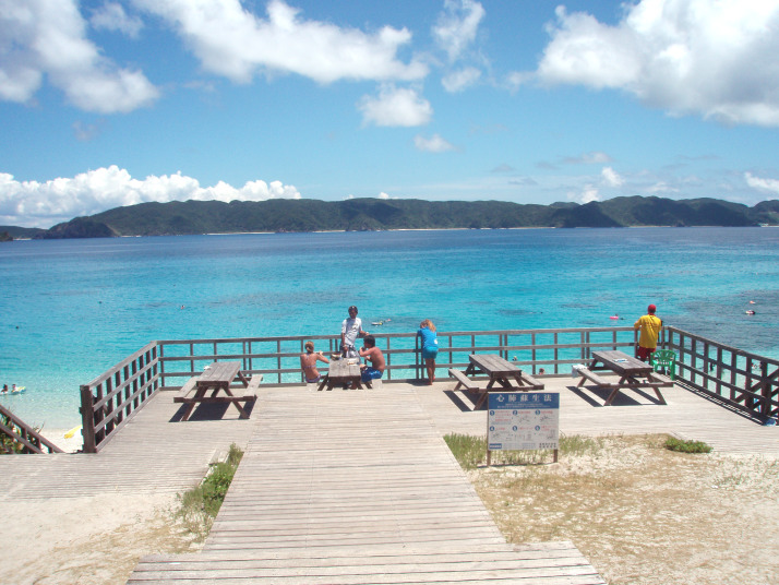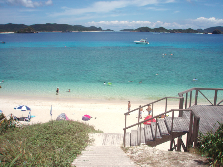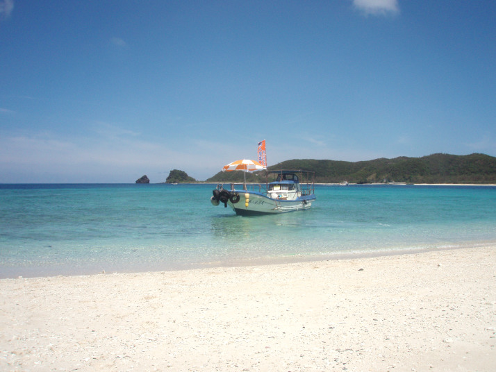 翌3日目は無人島「安慶名敷島」へ渡し船で行きました。
