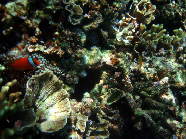 クマノミもそこらじゅうで見れて、おまけに浅いので、すぐ近くで見れました。
