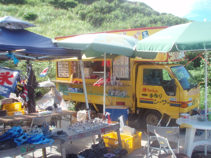 そのビーチまで、無料で駐車場運営の通称「勝ちゃん」が車で送ってくれました。