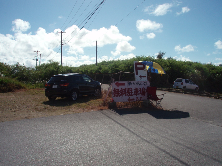 「吉野海岸」も前もってネットで散々調べていたので、道路から向かって山側の駐車場が無料で、海側の駐車場が有料500円と知っていた為、迷わず山側駐車場に入りました。