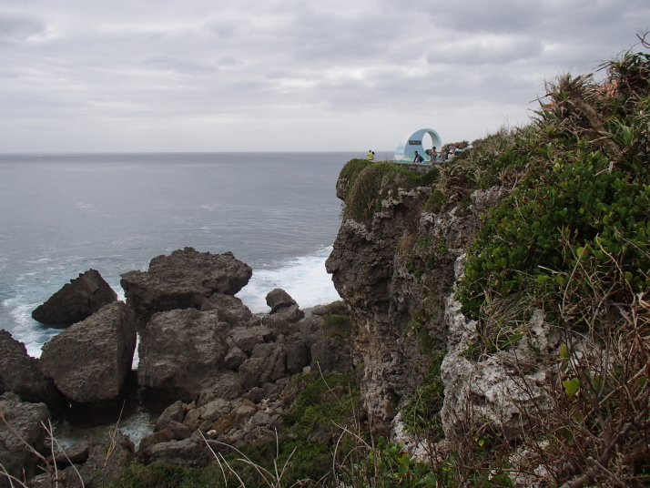 岬の奥にある灯台の廻りに、あぜ道があったので進んで見ると、喜屋武岬を横から見渡せる断崖になっていました。