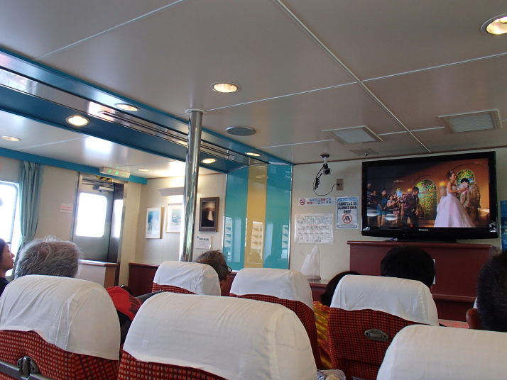 チケット購入後、早々にフェリーに乗船し、何とか席はバラバラではあったんですが確保できました。