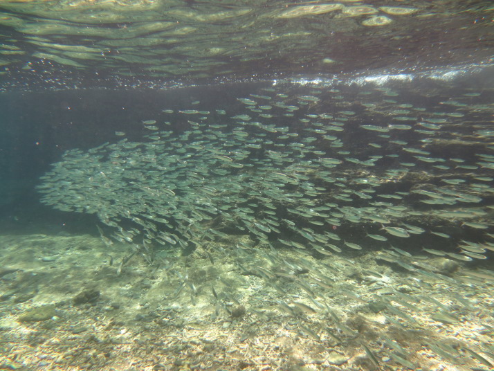 海に入って早々、小魚の大群が居ました。