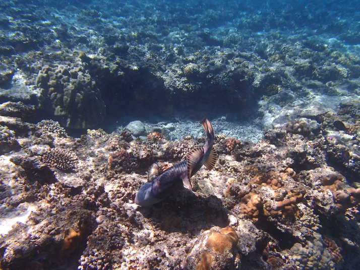 この魚よく他のビーチでも見かけるんですが、サイズが巨大でビックリでした。