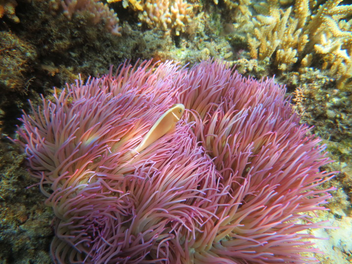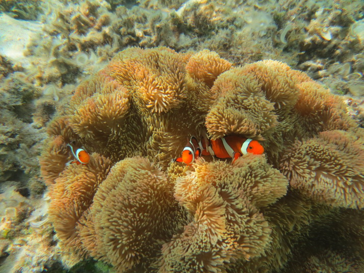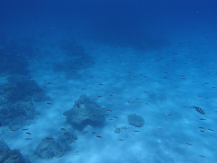 何だー!最後はちょっとお手頃な場所なんだなーとか思ってたんですが、この辺りは遊泳禁止でガイドさんとしか泳いではいけない場所らしく、泳いで見ると広大な珊瑚の群生が広がっていました。