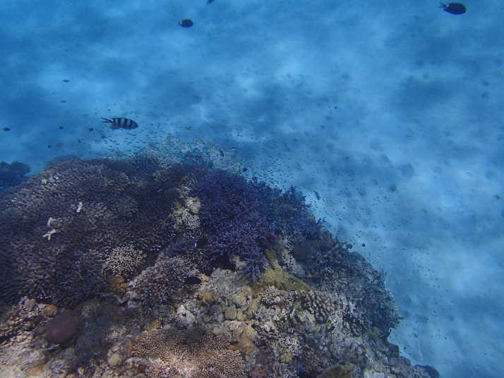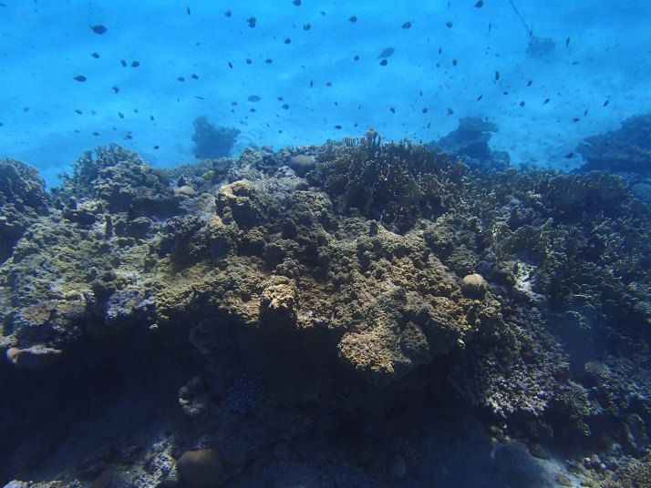ダイビング船が居る辺りまで行くと珊瑚や魚が群れてました。