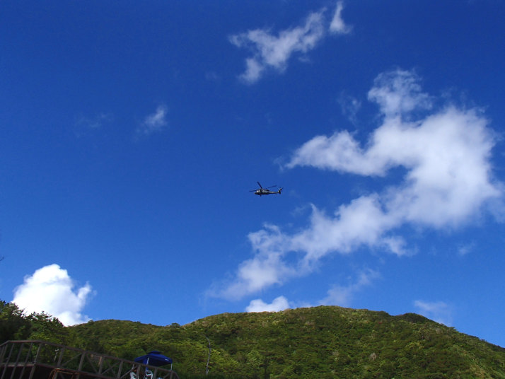 泳いでいると、上空をヘリが旋回していて音が怖くて気になったので、早々に泳いでテントまで戻って来ました。