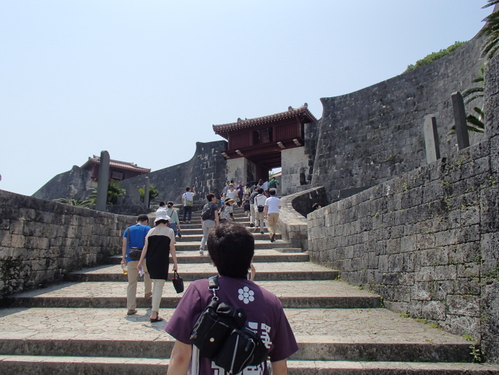 さすがにGWともあって観光客が多くて、多分「首里城」への行き道も皆わからないようで、私達が歩く方に着いて来る人が多く、何故かスーツケースをガラガラと引っ張っている人までも、階段の多いこの道に着いて来てました。