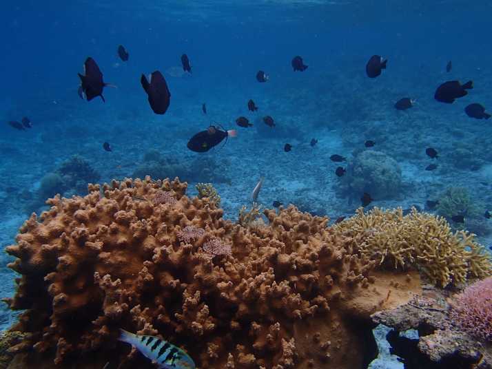 この日も大潮で水深が浅かったので、生憎の曇り空にしては珊瑚が良く見え、普段より良い感じでした。