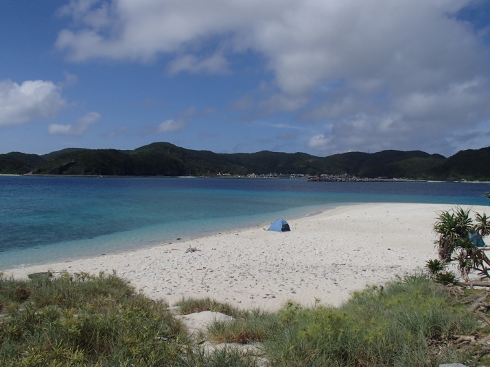 今日の宮平さんの忠告では、昨日テントを建てた場所は風が強い為、後ろが壁になっている辺りが良いとの事で、そっちにテントを設置して見ました。
