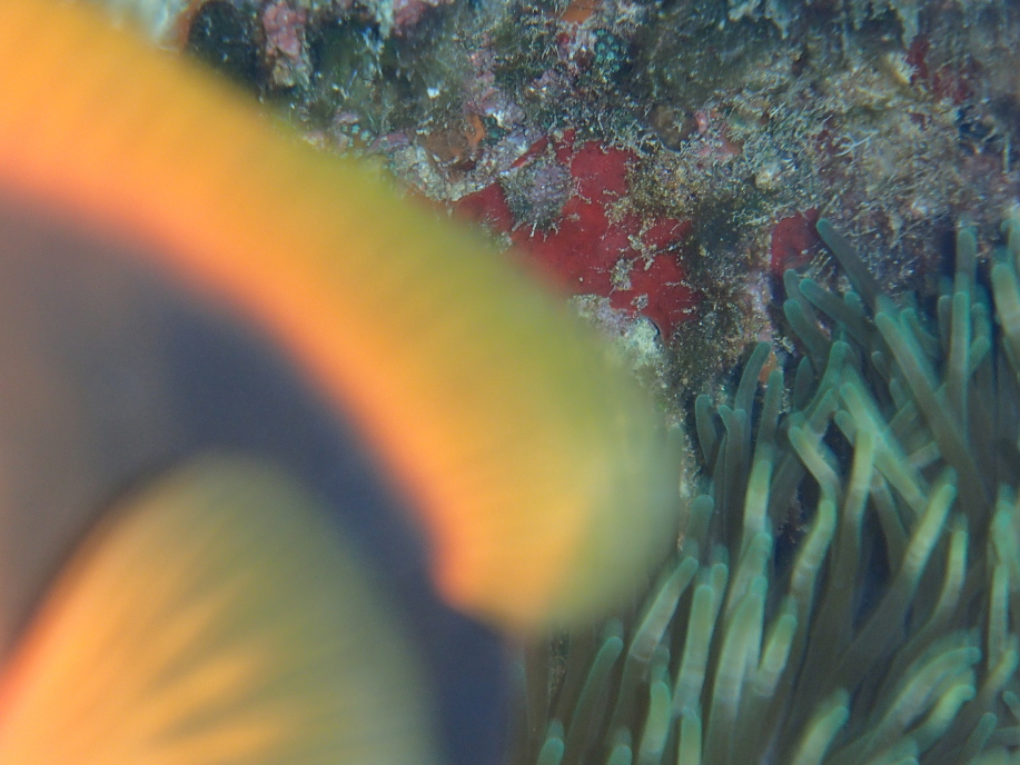 潜って接写でクマノミを撮ろうとしたんですが、思ったよりクマノミが近づき過ぎて、何だか判らない写真になっちゃいました。