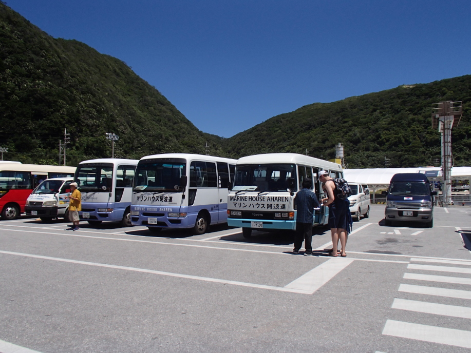 朝11時10分に到着なので日帰りの観光客も多く、阿波連行きの乗り合いバスは順番待ちで大混雑でした。