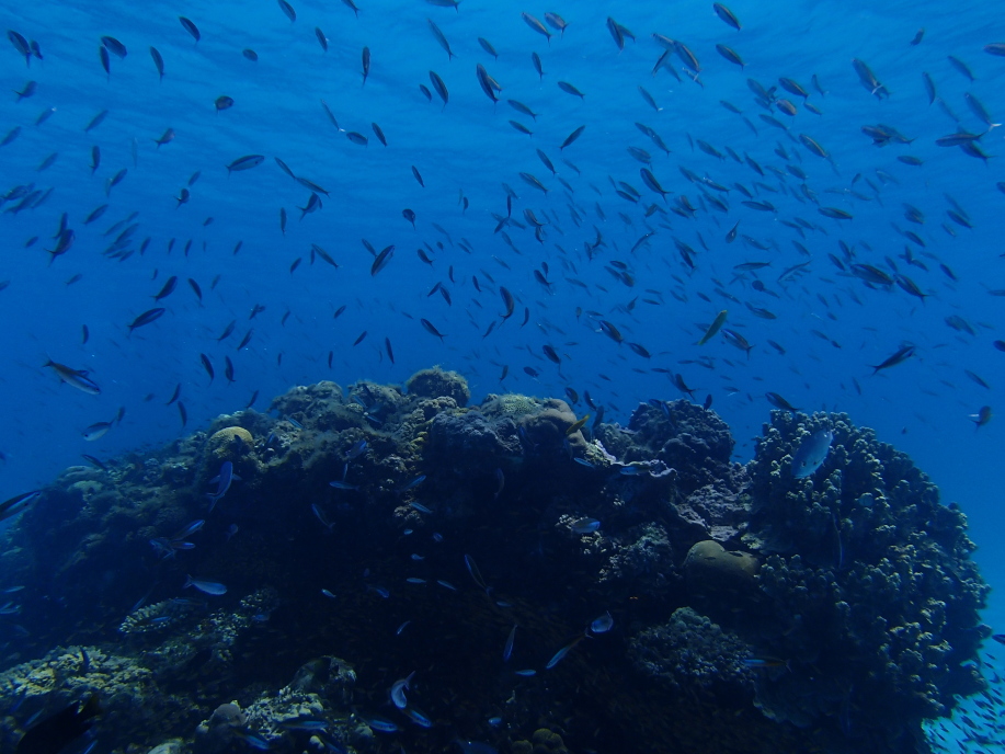 魚が無数に珊瑚に群がっていて綺麗なんですが、魚の数が多過ぎて逆にゴミのように見えるくらいでした。