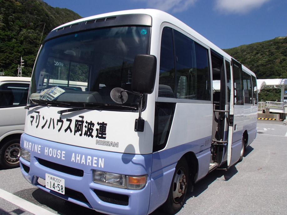今回も定宿の「マリンハウス阿波連」の送迎者が港に迎えに来ていました。