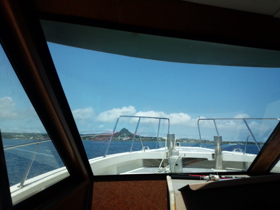 予定よりだいぶ時間もかかって、1時間半でやっと伊江島に到着となりました。