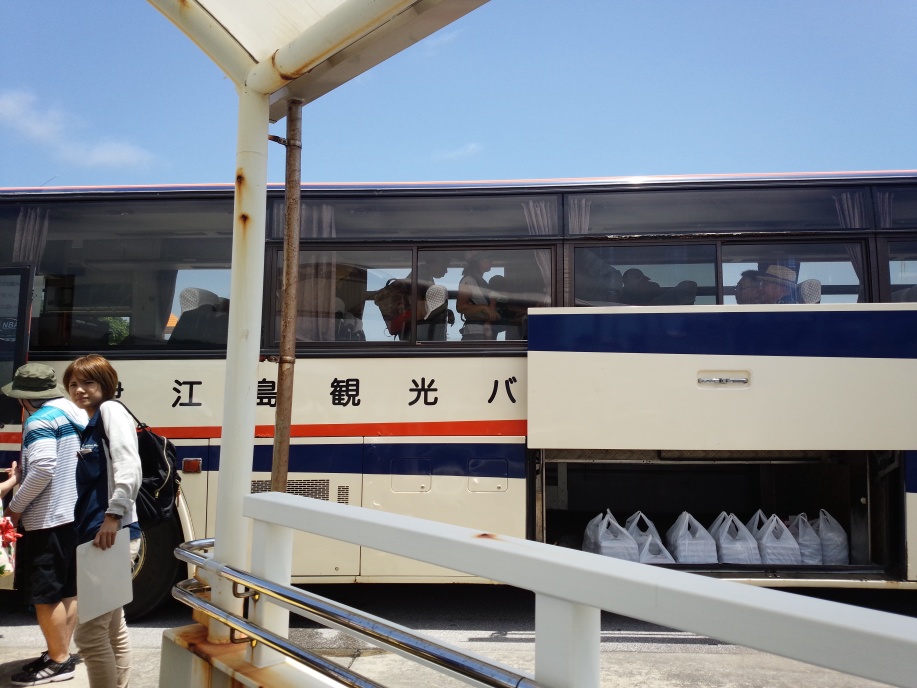 今回はいつもと違うツアー探して、伊江島まで船に乗って行くバスツアーを選びました。