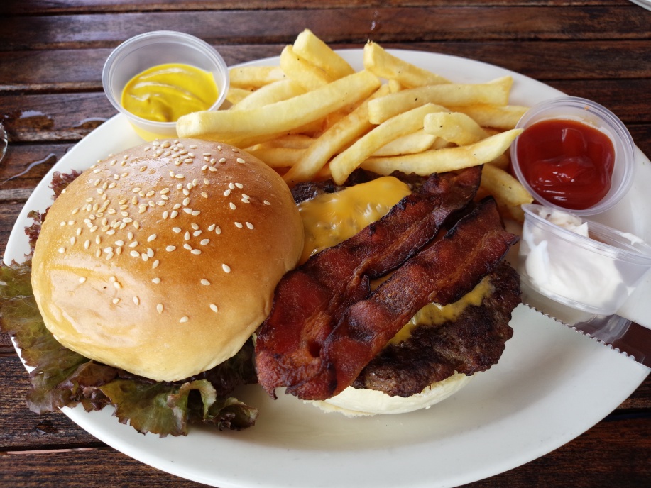 ただ、料理に関しては、やっぱりアメリカンで、ハンバーガーを頼んだら、ご覧の量でビックリでした。