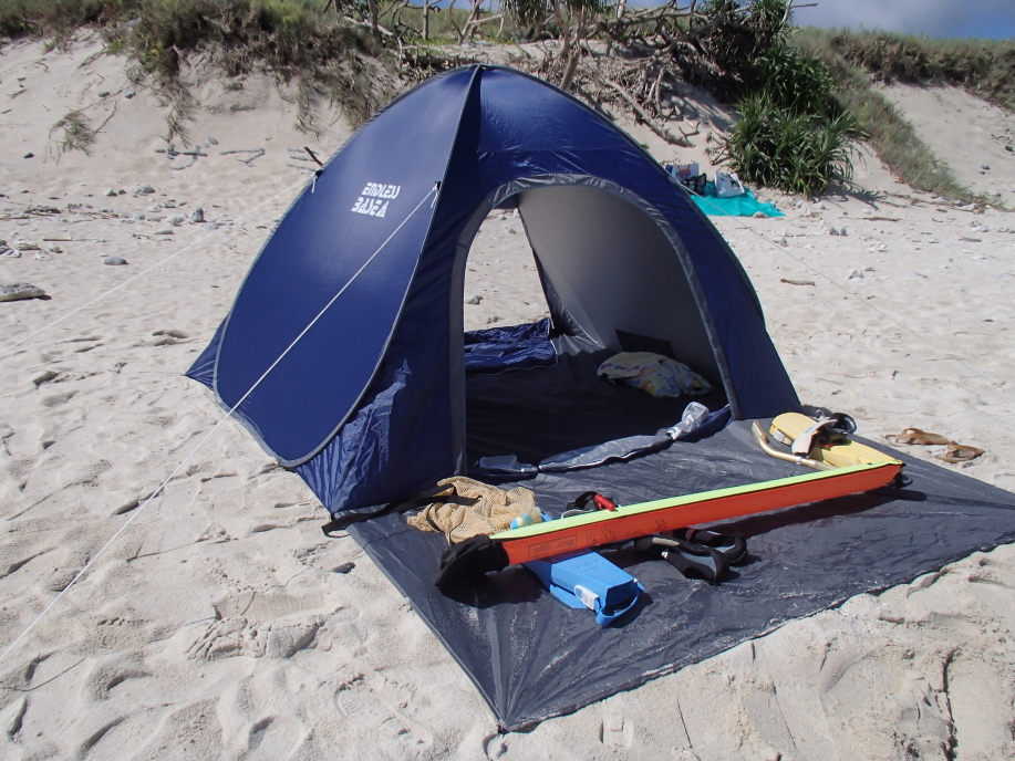 泳ぎ過ぎて、ヘロヘロになりテントで爆睡しました。