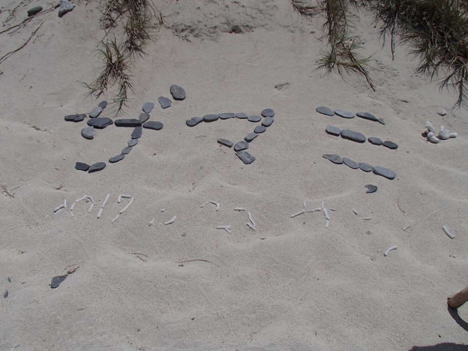 これは、昨日近くに居た若者達が石でザマミの文字を残していったあとです。