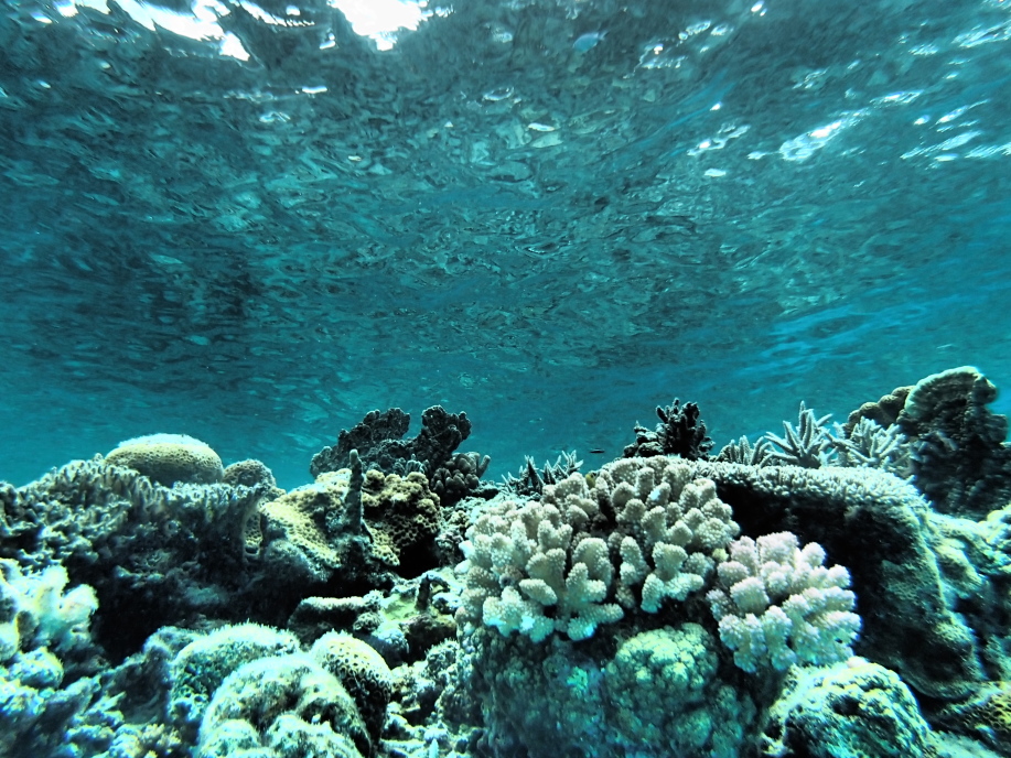 少し濁ってはいましたが、潜って写真を撮ると透明度は全く判らないと思います。